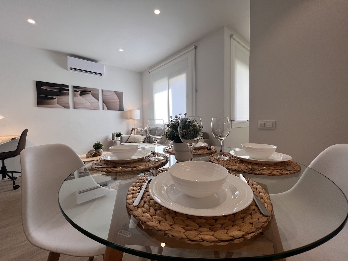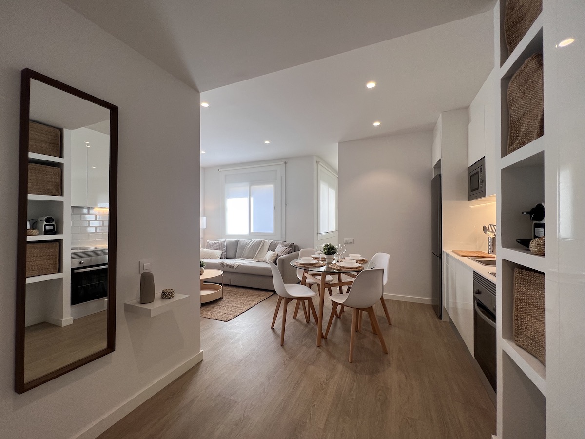 Esta vivienda, ubicada en la calle Encarnació, esquina con la renovada y vibrante Rambla Prim, está situada en una primera planta con vistas al interior de manzana. En esta ocasión, realizamos una pequeña pero efectiva actualización.