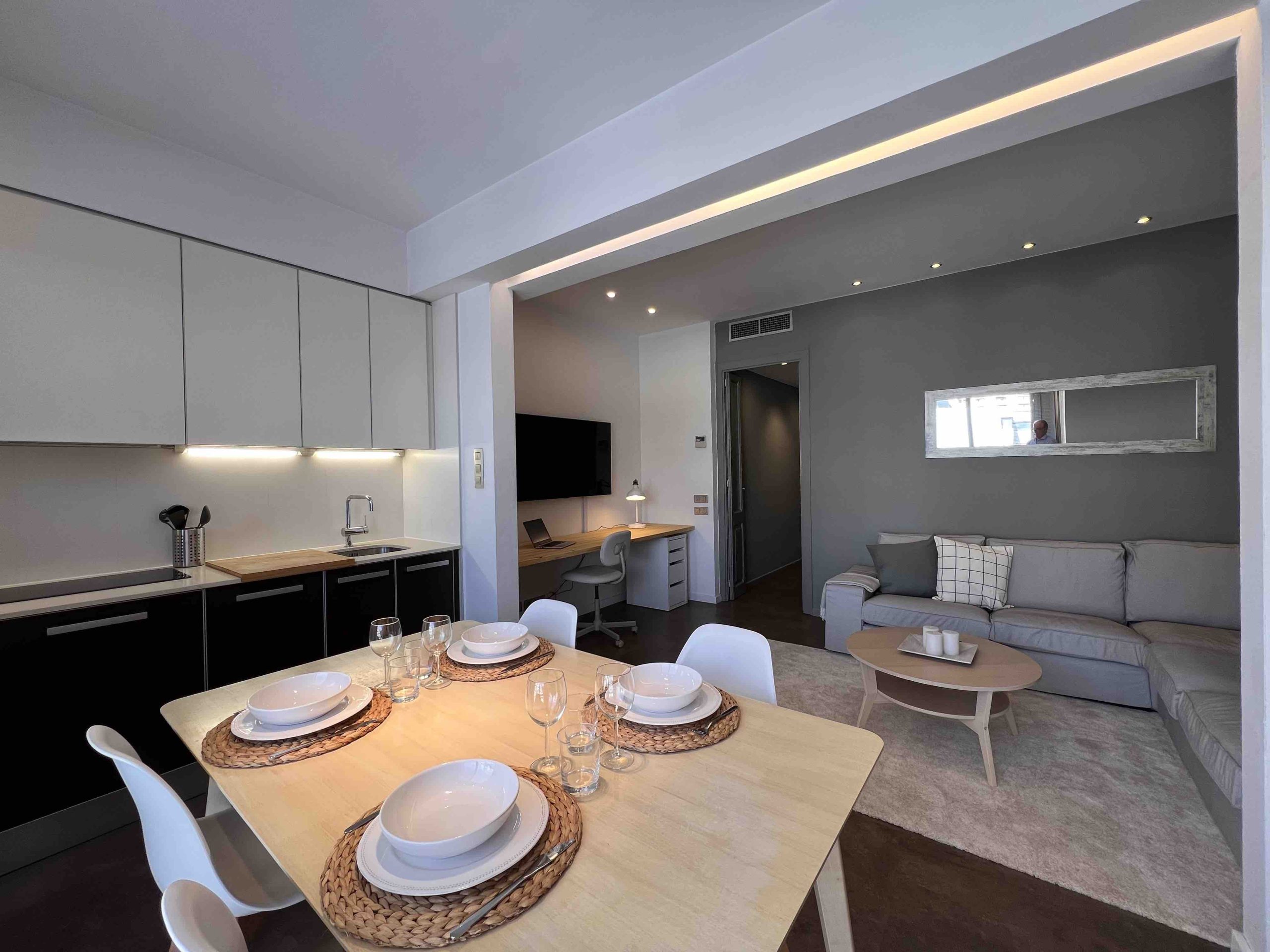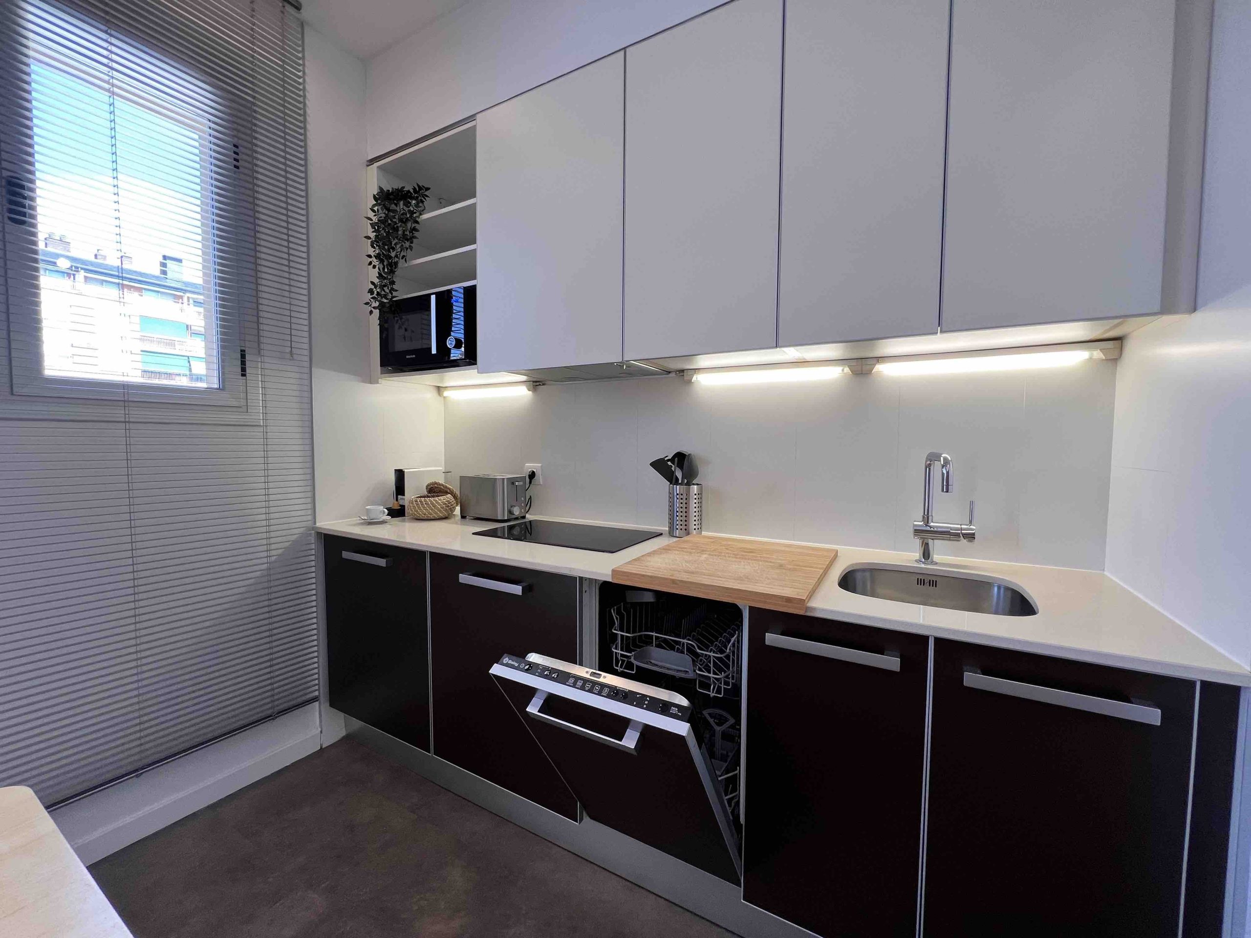 Situada en la animada calle Córcega, en el barrio de Sagrada Familia, esta vivienda en una cuarta planta con vistas a un tranquilo interior de manzana recibió una actualización elegante y funcional.