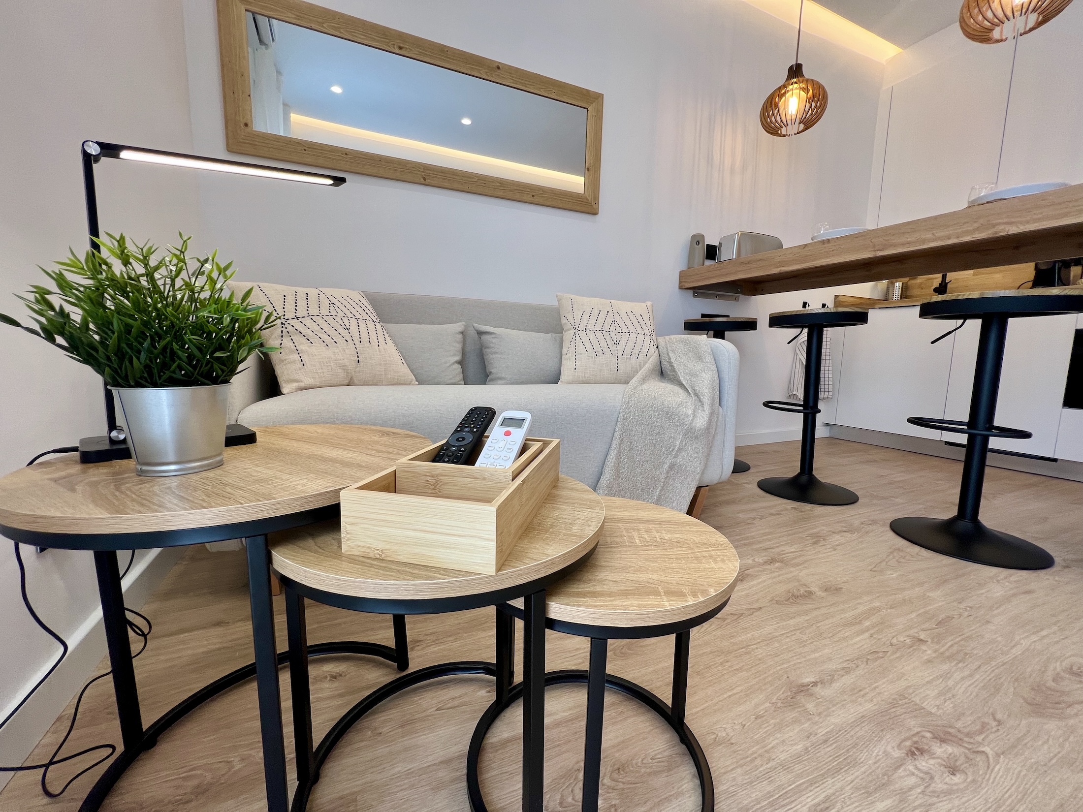 Finalmente, se instalaron splits de aire acondicionado y se amuebló completamente. Con un coste total de 40.000€, esta reforma logró incrementar el valor de compra del piso en 100.000€, convirtiéndolo en una inversión excepcional en una de las zonas más deseadas de Gracia.
