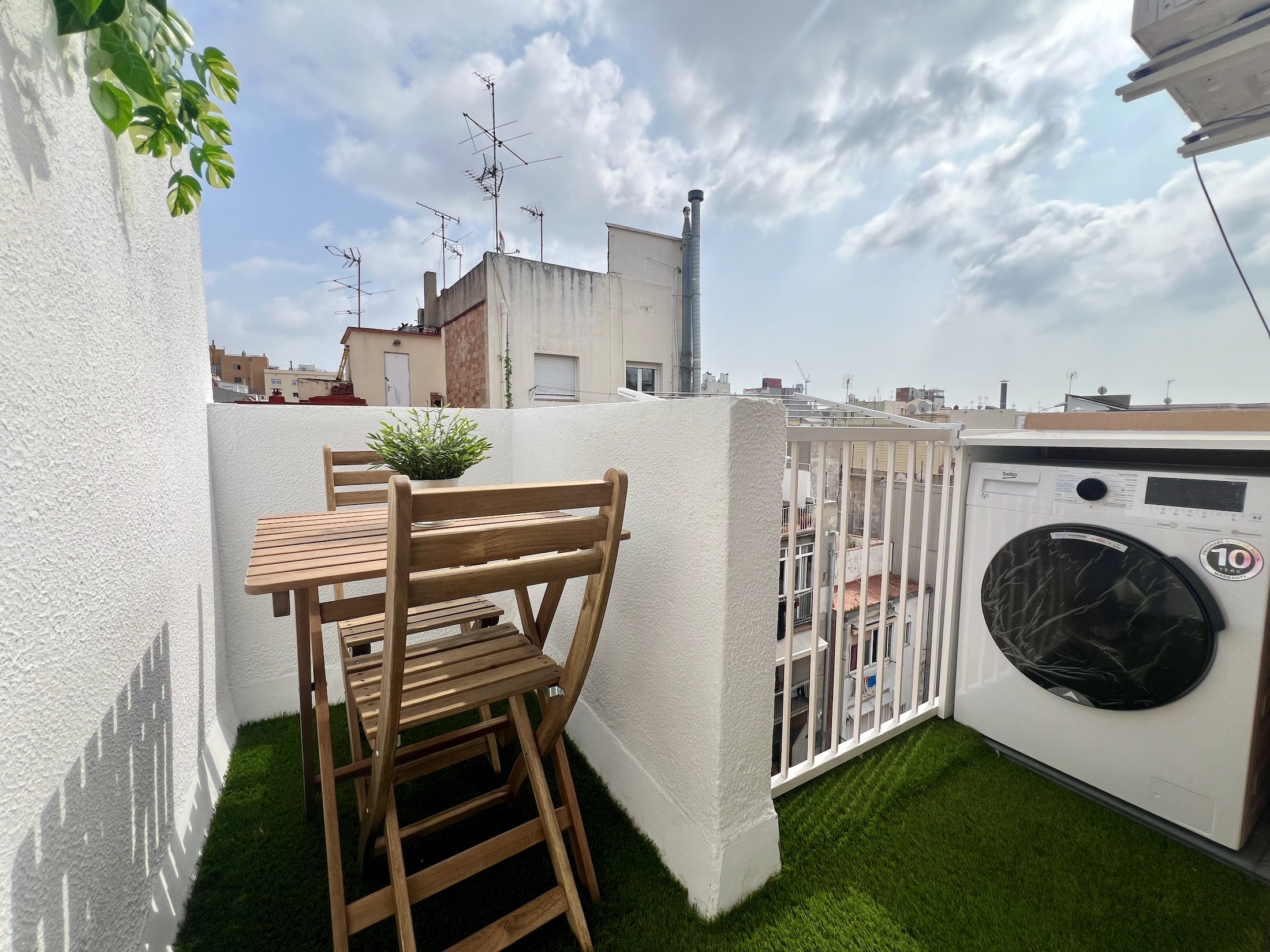 La terraza se revistió con césped artificial, creando un espacio verde y acogedor para relajarse al aire libre.
